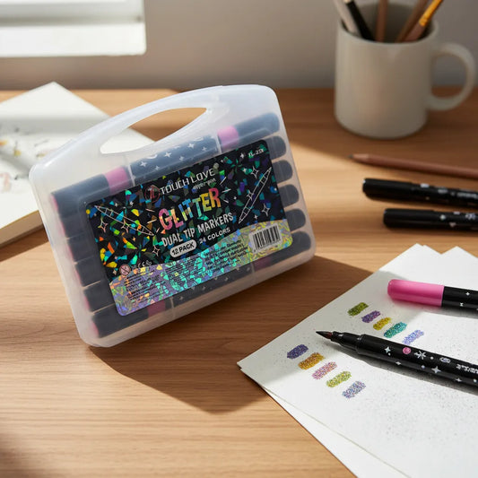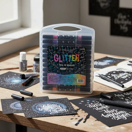 48 Marcadores Con Glitter Plumones Metalicos Doble Punta Multicolores