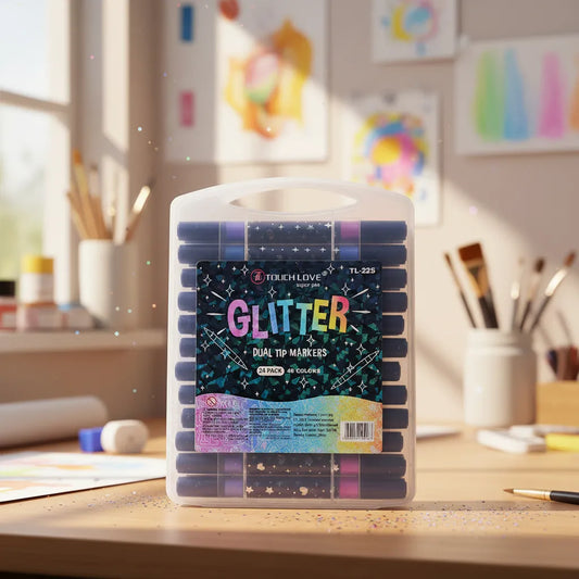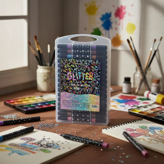 24 Marcadores Con Glitter Plumones Metalicos Doble Punta 24 Multicolores