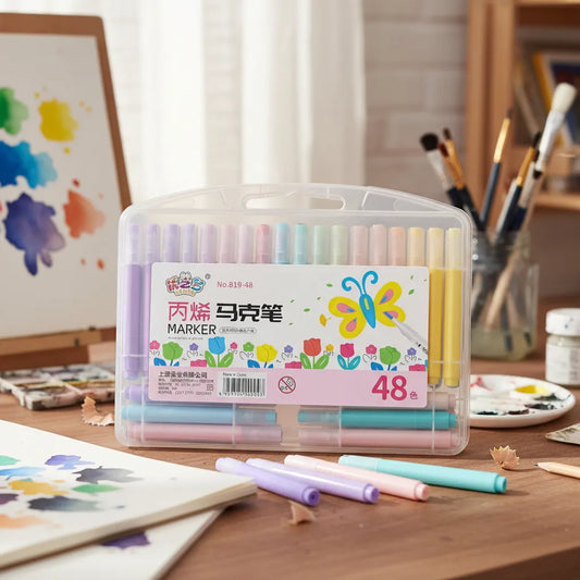 48 Plumones Rotuladores Punta Redonda Pintura Acrílica Multicolor